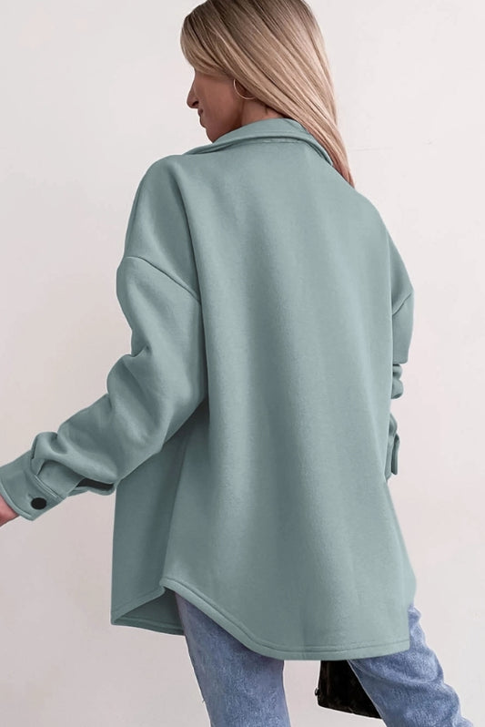 Button Up Shacket with Pockets- Sage