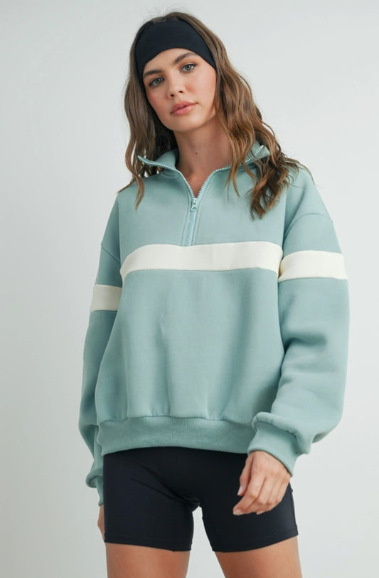 Two Toned Half Zip Collared Sweatshirt