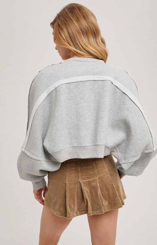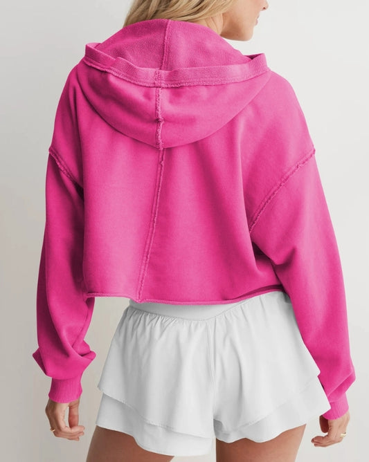 Balloon Sleeve V Neck Cropped Hoodie