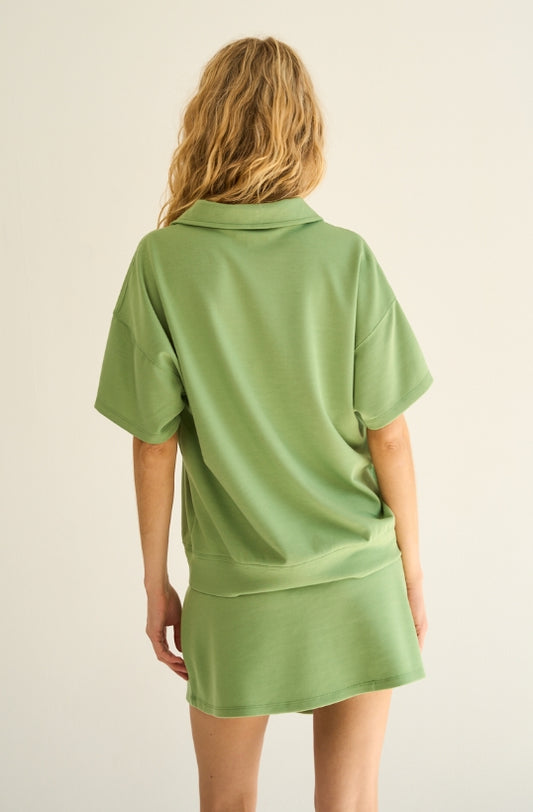 Collared 1/4 Zip Short Sleeve Top